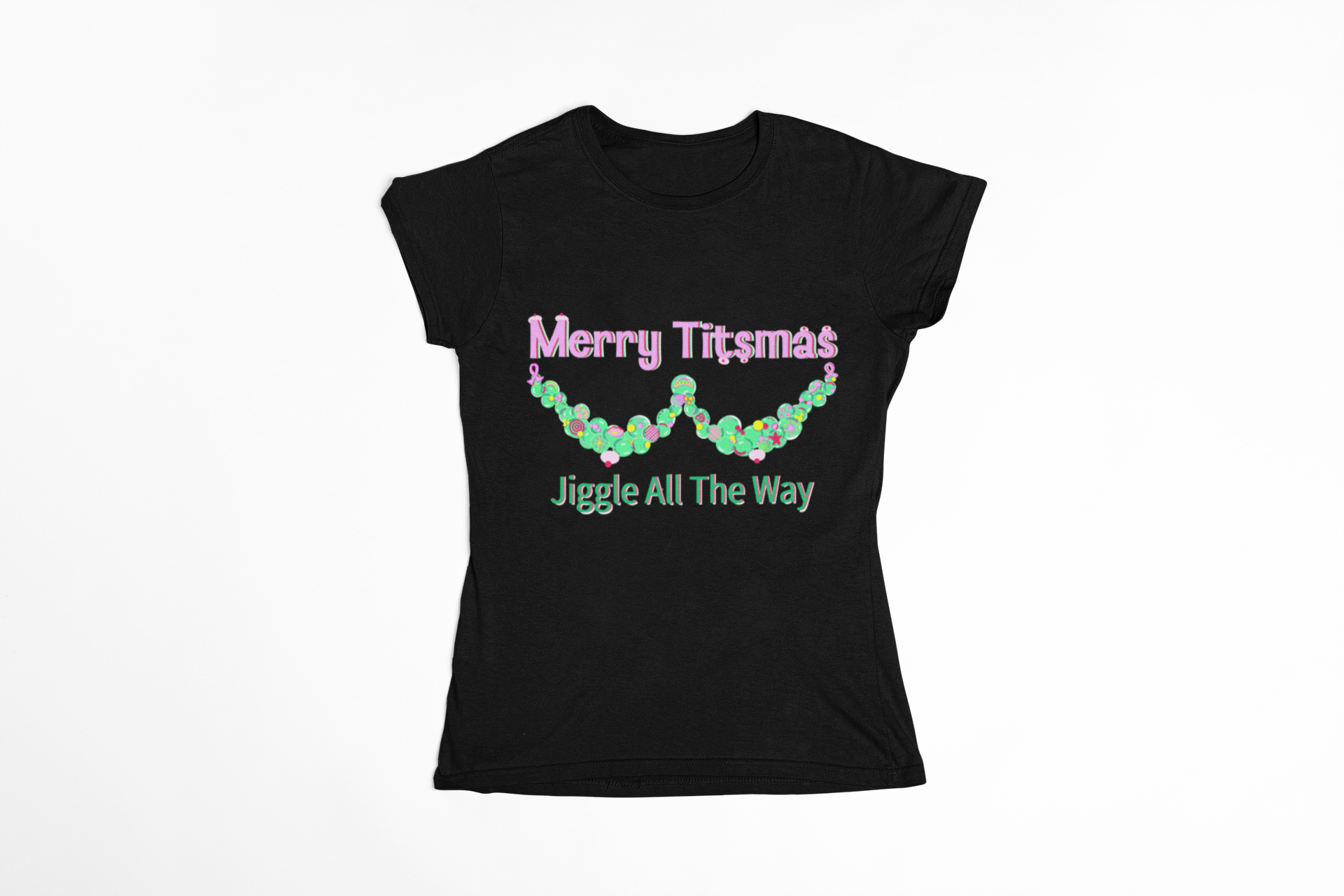 Merry T!tsmas “Jiggle All The Way” Women’s T‑Shirt — Holiday Mischief Tee